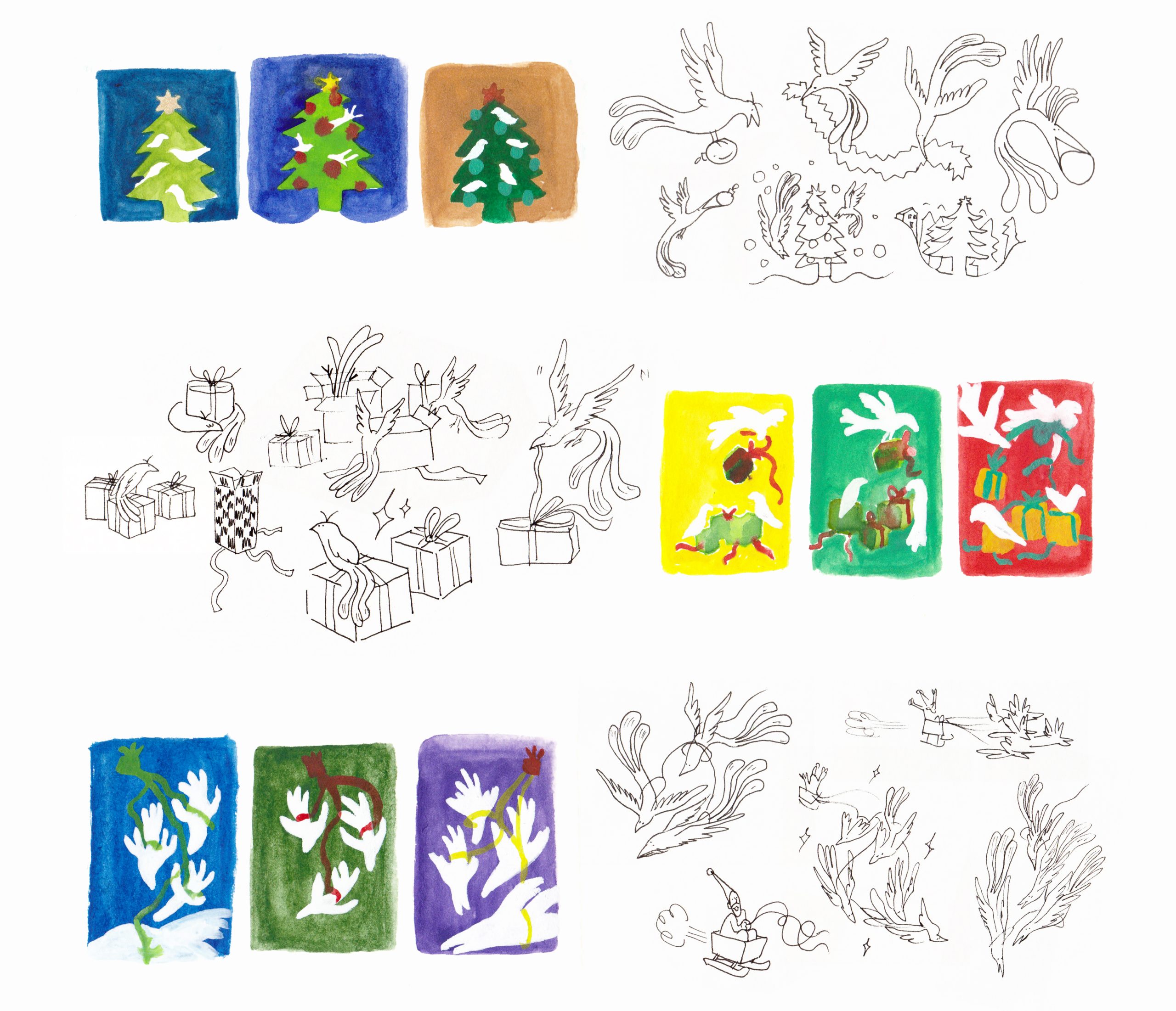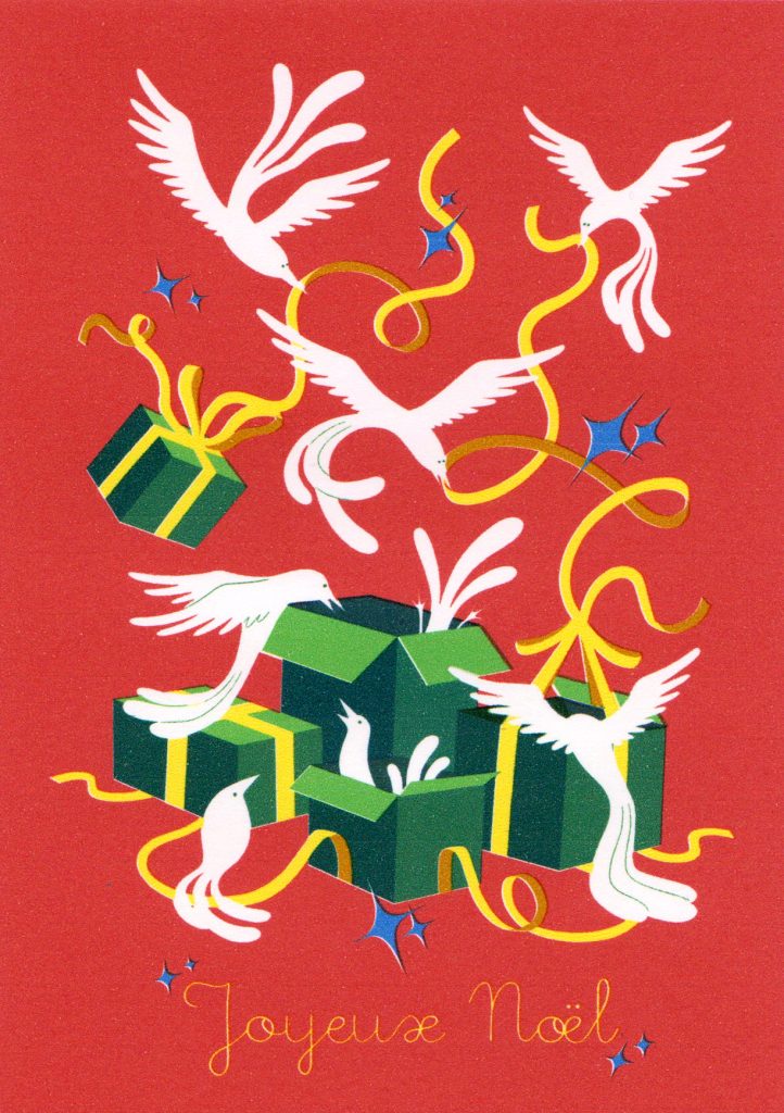 Cette année les paradisiers remplacent les lutins et les rennes pour les festivités, voici une série de 3 illustrations mettant en scène leur organisation pour que tout soit prêt le jour de Noël.